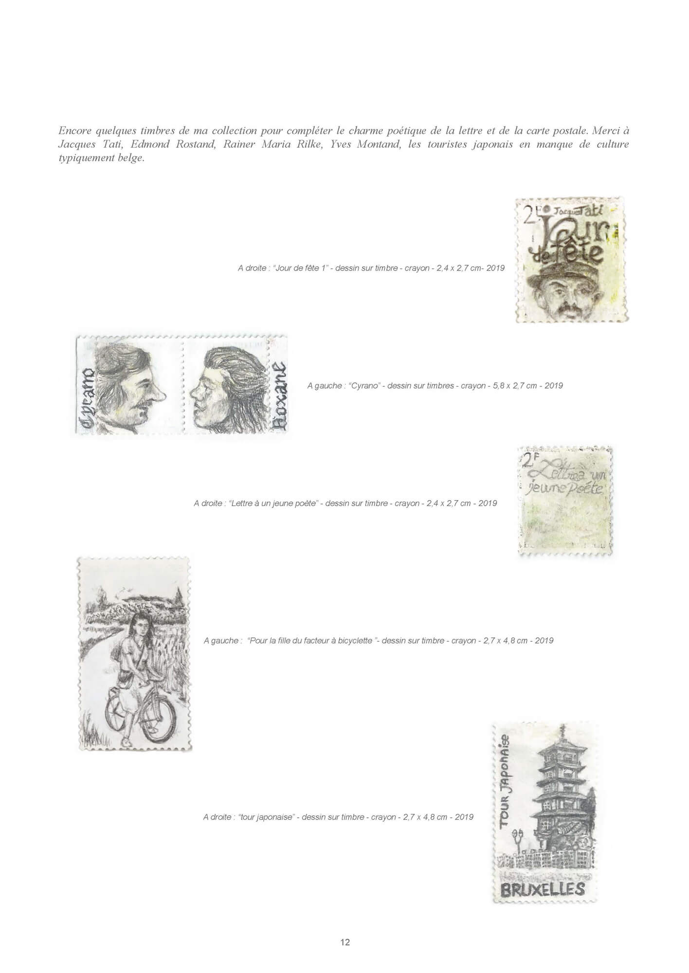C’est au dehors de ce papier à lettre et de son enveloppe que j’existe en dessinant les timbres.